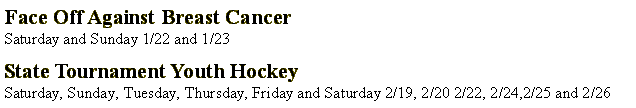 Skip Brush Youth Hockey Tournament Friday, Saturday and Sunday 3/4 3/5 and 3/6 Friday, Saturday and Sunday 3/11 3/12 and 3/13